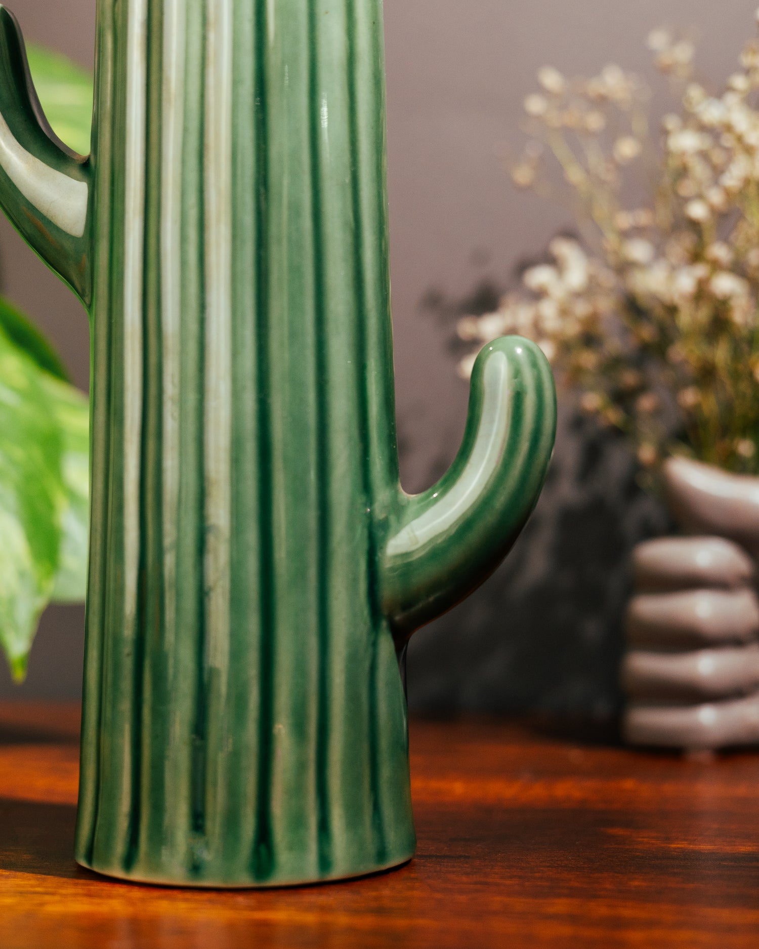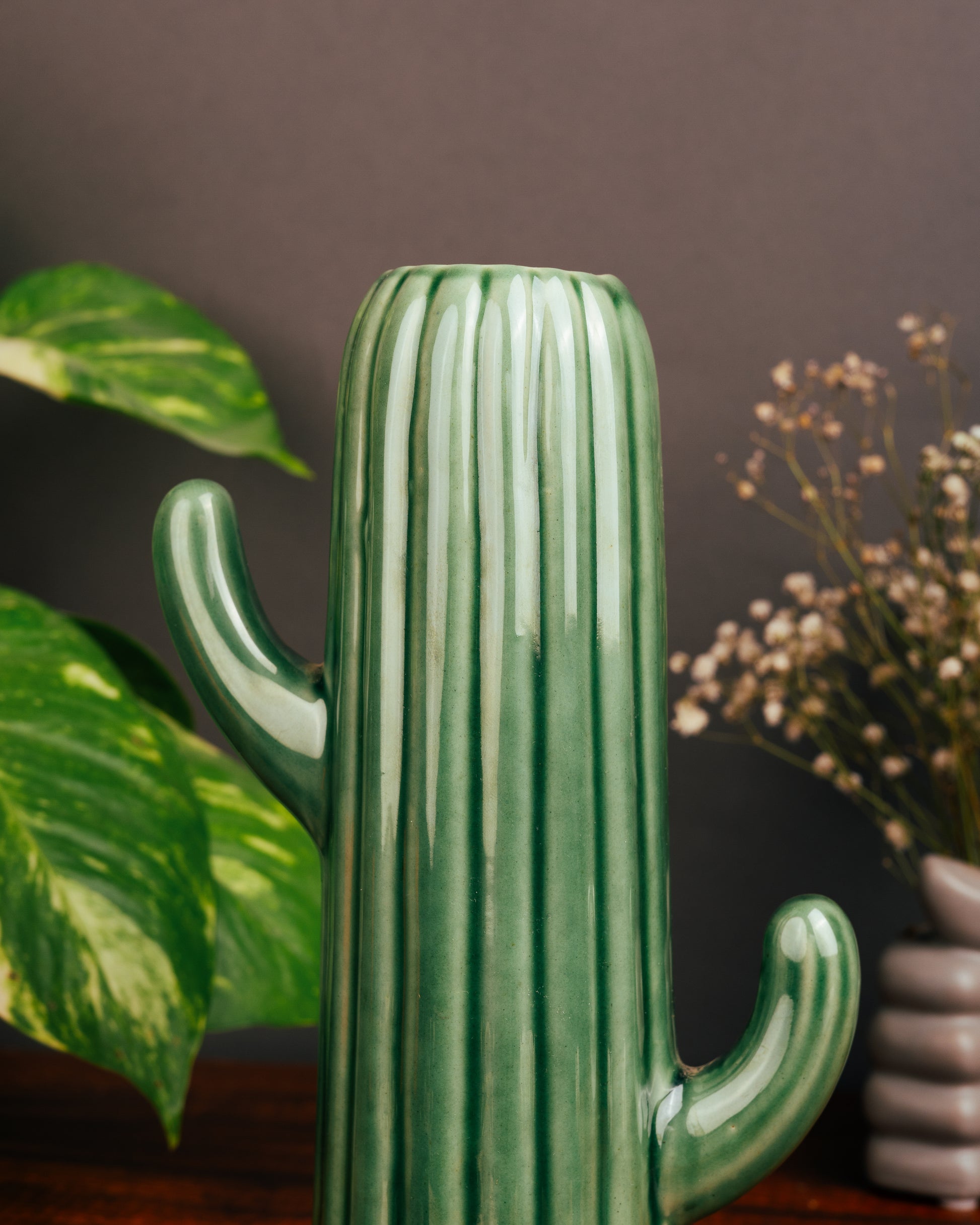 With its bold cactus shape, glossy green glaze, and sculptural presence, this vase adds